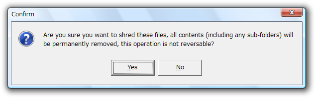 ※2 複数のファイル / フォルダを選択している場合は、その数だけこのウインドウが表示される- Are you sure you want to Shred thease files ~