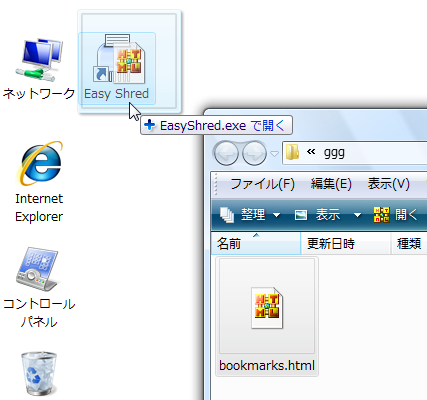 また、デスクトップには、「Easy Shred」へのショートカットアイコンが