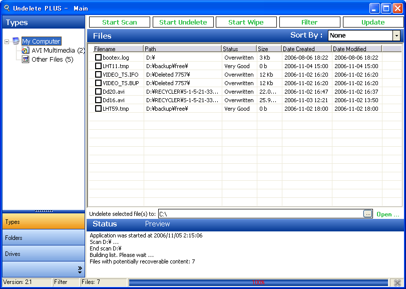 - 「Start Undelete」をクリックすればOK!
