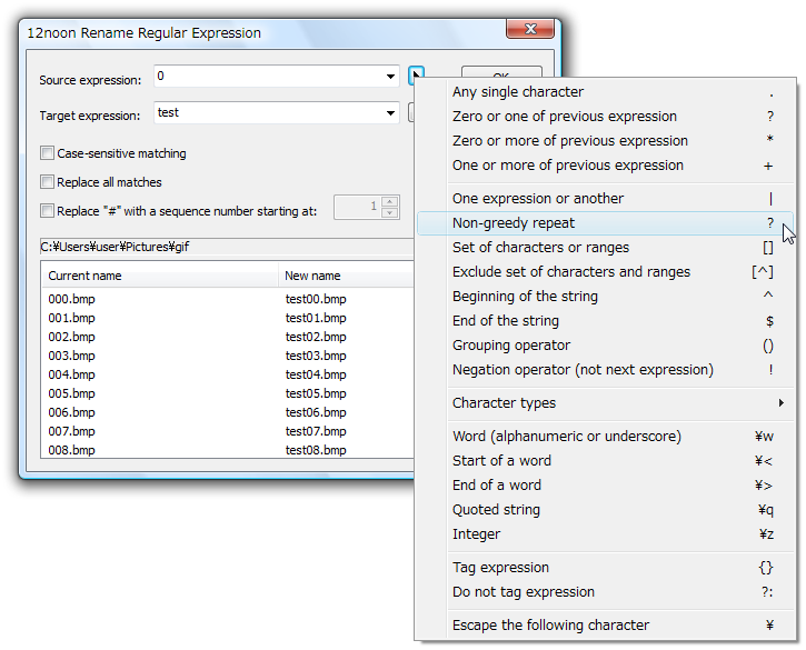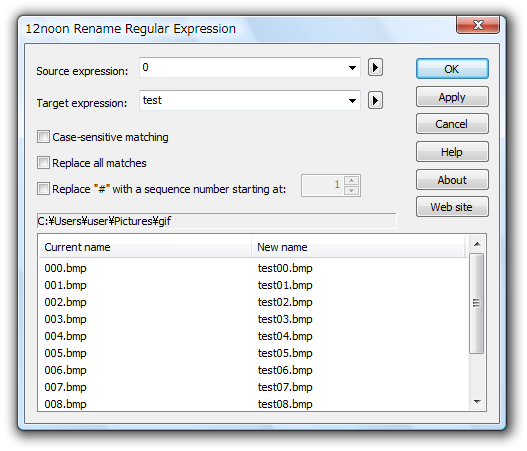 もちろん、正規表現を使わずに、普通の置換を利用したリネームソフトとしても