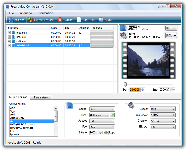 多くのフォーマットに対応した動画変換ソフト「Free Video Converter」