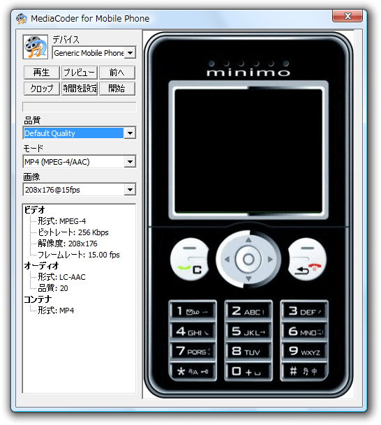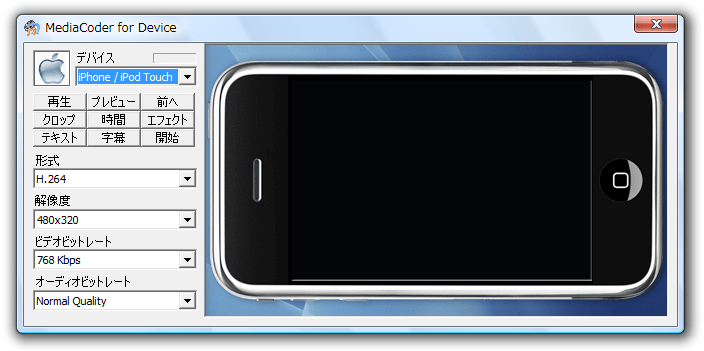 MediaCoder iPhone / iPod Touch Edition (の設定画面)