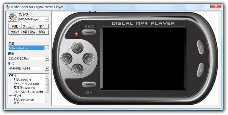 MediaCoder MP3/MP4 Player Edition (の設定画面)