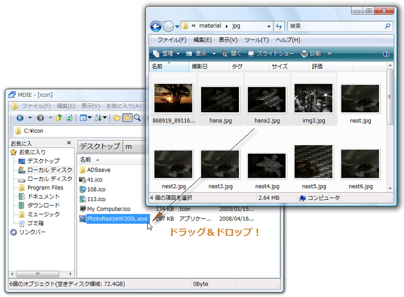 「Picture Resizer」のアイコンにドラッグ&ドロップすればOK※6。