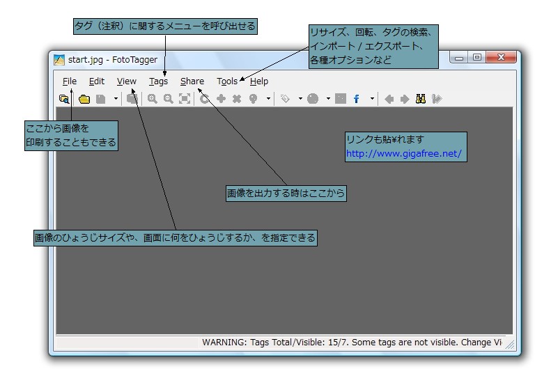 「FotoTagger」は、JPG 画像に注釈を付けることができるソフトです。